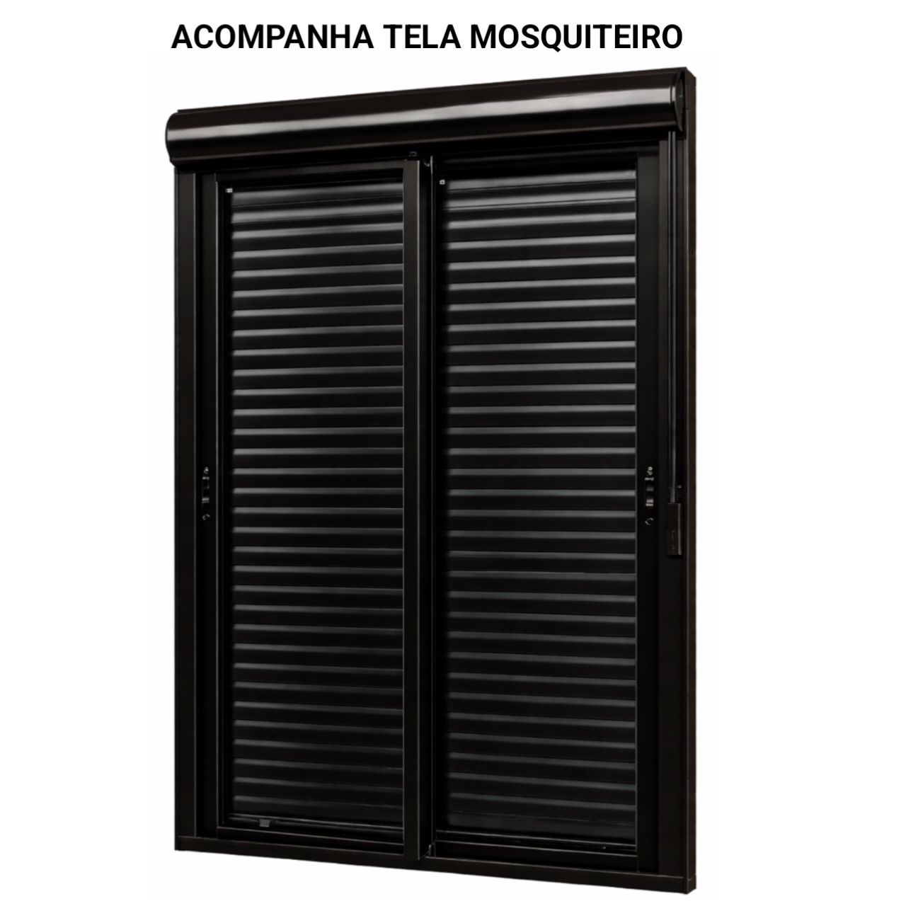 PORTA COM PERSIANA INTEGRADA 2 FOLHAS MÓVEIS COM FECHO CONCHA ACIONAMENTO MANUAL COM TELA MOSQUITEIRO DE CORRER - MODELO PML.TL